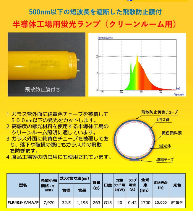 半導体工場用蛍光ランプ